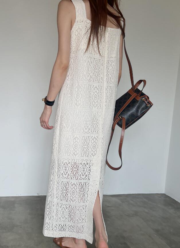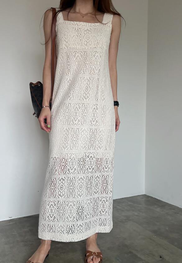 繊細な透かし編みが美しいニットワンピースです。