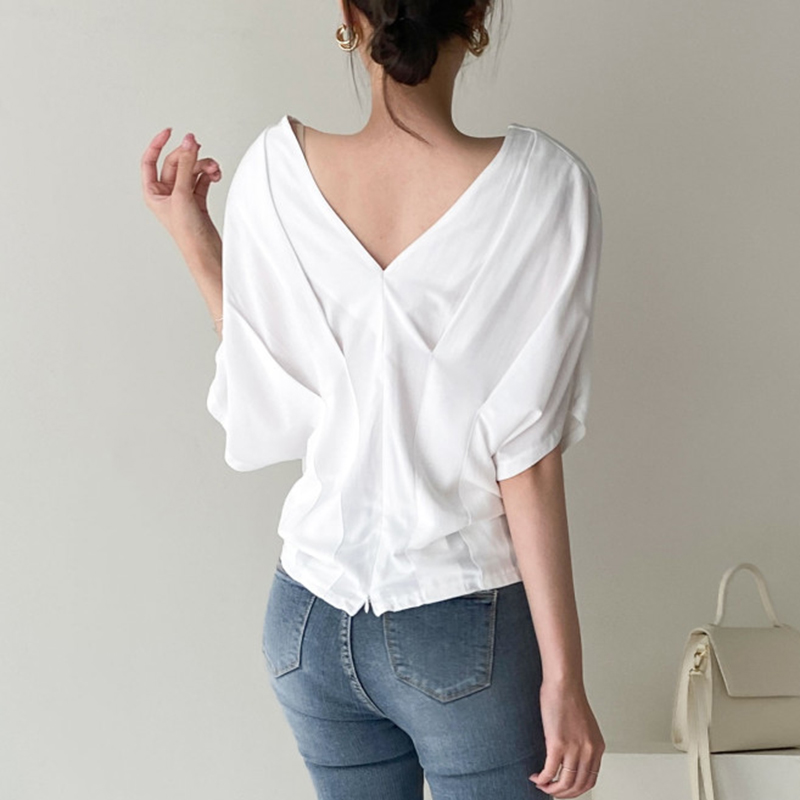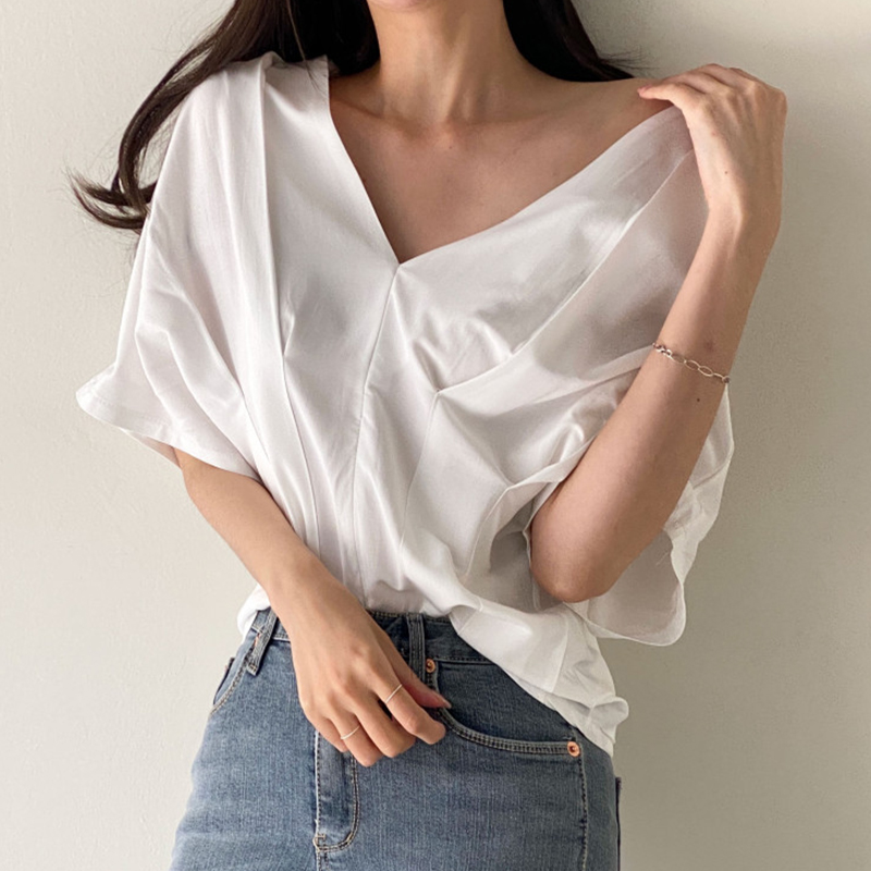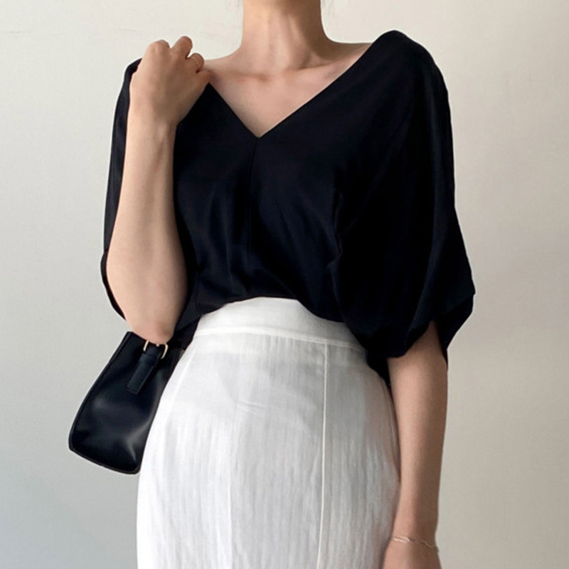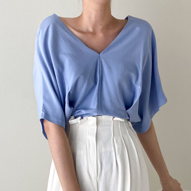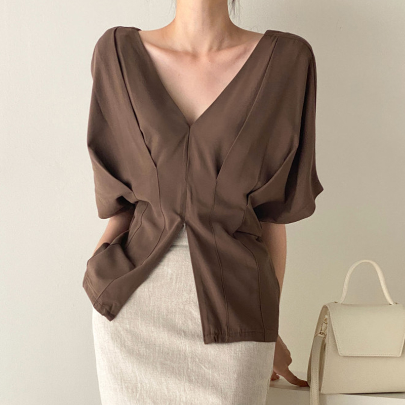 これからの季節に大人気のブイネックブラウスです。 キレイめファッションにぴったりの上品なデザインで、どんなコーディネートにも合わせやすく、 様々なシーンで活躍してくれる万能アイテムです。